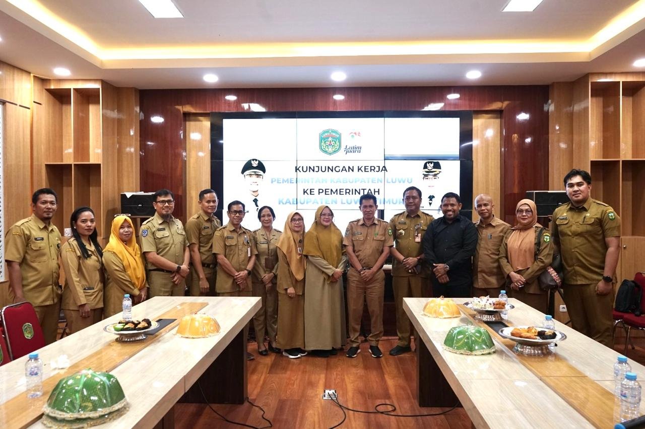Rombongan Pemkab Luwu dipimpin Asisten Pemerintahan dan Kesra, Ahyar Kasim dan diterima Asisten Pamerintahan dan Kesra Lutim, Aini Endis Anrika didampingi Kabag Kesra Lutim, Raoda K., dan Kabag Hukum, Yerislin Wuala, di ruang rapat pimpinan, Kantor Bupati Lutim, Selasa (7/10/2025).