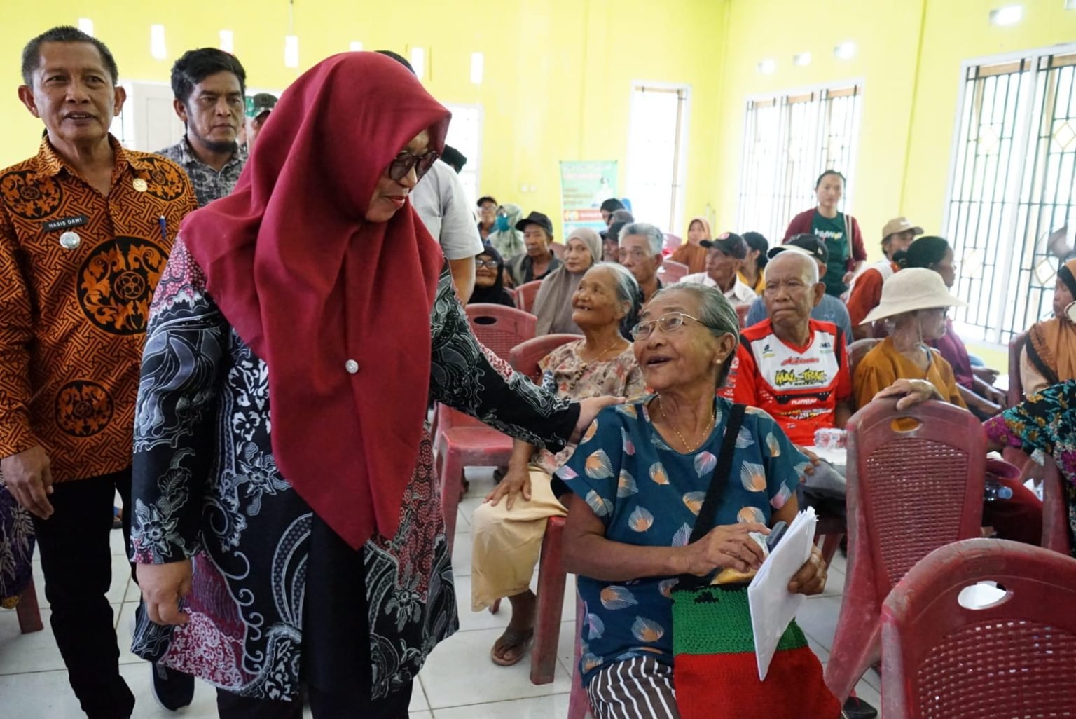 Saat proses penyaluran berlangsung, Wakil Bupati Luwu Timur, Hj. Puspawati Husler mengapresiasi kinerja para petugas penyaluran kartu lansia.
