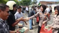 Menariknya, suasana aksi juga diwarnai momen humanis ketika para Polisi Wanita Polres Luwu Timur membagikan makanan dan minuman kepada peserta. Kehadiran aparat pun tak hanya sebatas menjaga ketertiban, melainkan juga menunjukkan kepedulian dan sikap melayani.