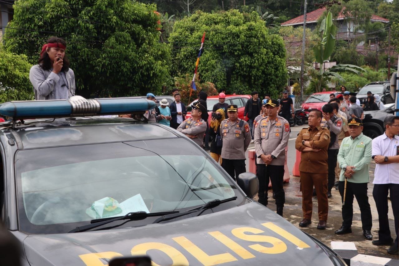Meski diwarnai orasi dan tuntutan, jalannya aksi tetap berlangsung aman, tertib, dan kondusif berkat pengawalan yang dilakukan Polres Luwu Timur bersama TNI dan Satpol PP.