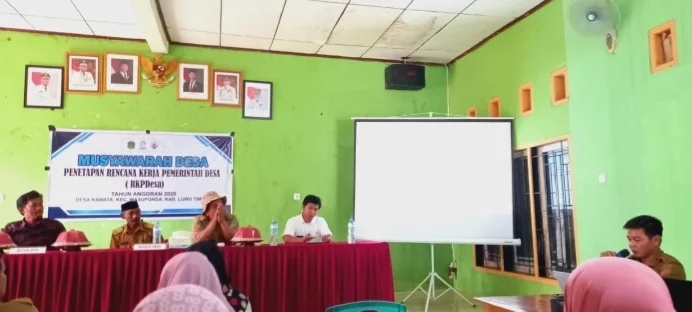 GaskanIndonesia,Luwu Timur-Pemerintah Desa Kawata menggelar Musyawarah Desa (Musdes) dalam Rangka Penetapan Rencana Kerja Pemerintah Desa (RKPDes) Tahun anggaran 2026 di aula kantor Desa Kawata, Kecamatan Wasuponda. Senin (27/10/2025).