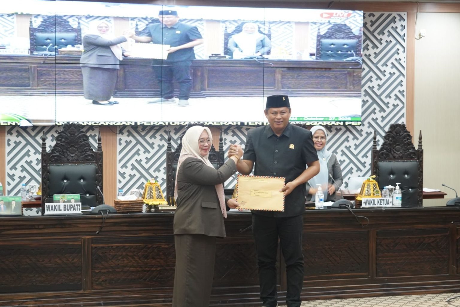 Penyerahan Ranperda dilakukan Wakil Bupati Luwu Timur, Hj. Puspawati Husler dan diterima Ketua DPRD Lutim, Ober Datte, disaksikan Wakil Ketua II Hj. Harisah Suharjo, segenap anggota dewan, serta jajaran Pemerintah Kabupaten Luwu Timur.