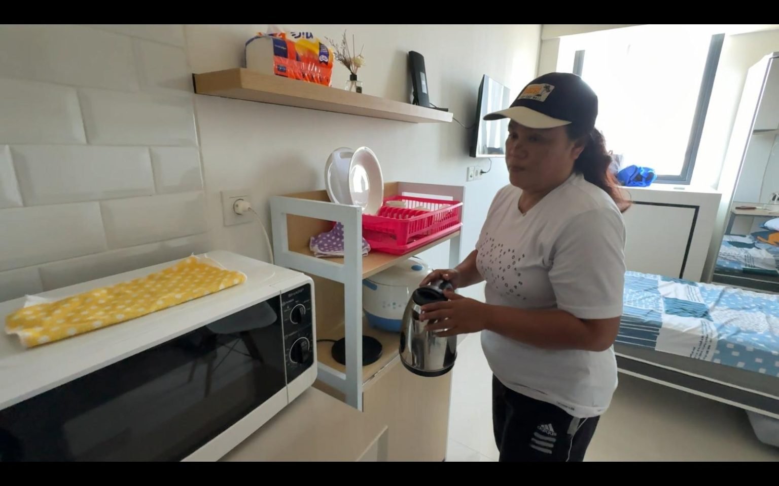 “Di sini kami langsung direspons dengan baik dan diperbolehkan tinggal. Kami sudah tinggal sejak hari Sabtu sampai sekarang, dengan fasilitas lengkap seperti kamar mandi, kulkas, pemanas nasi dan air, tempat tidur, TV, hingga lemari pakaian. Semua gratis,” tambah Jumati.