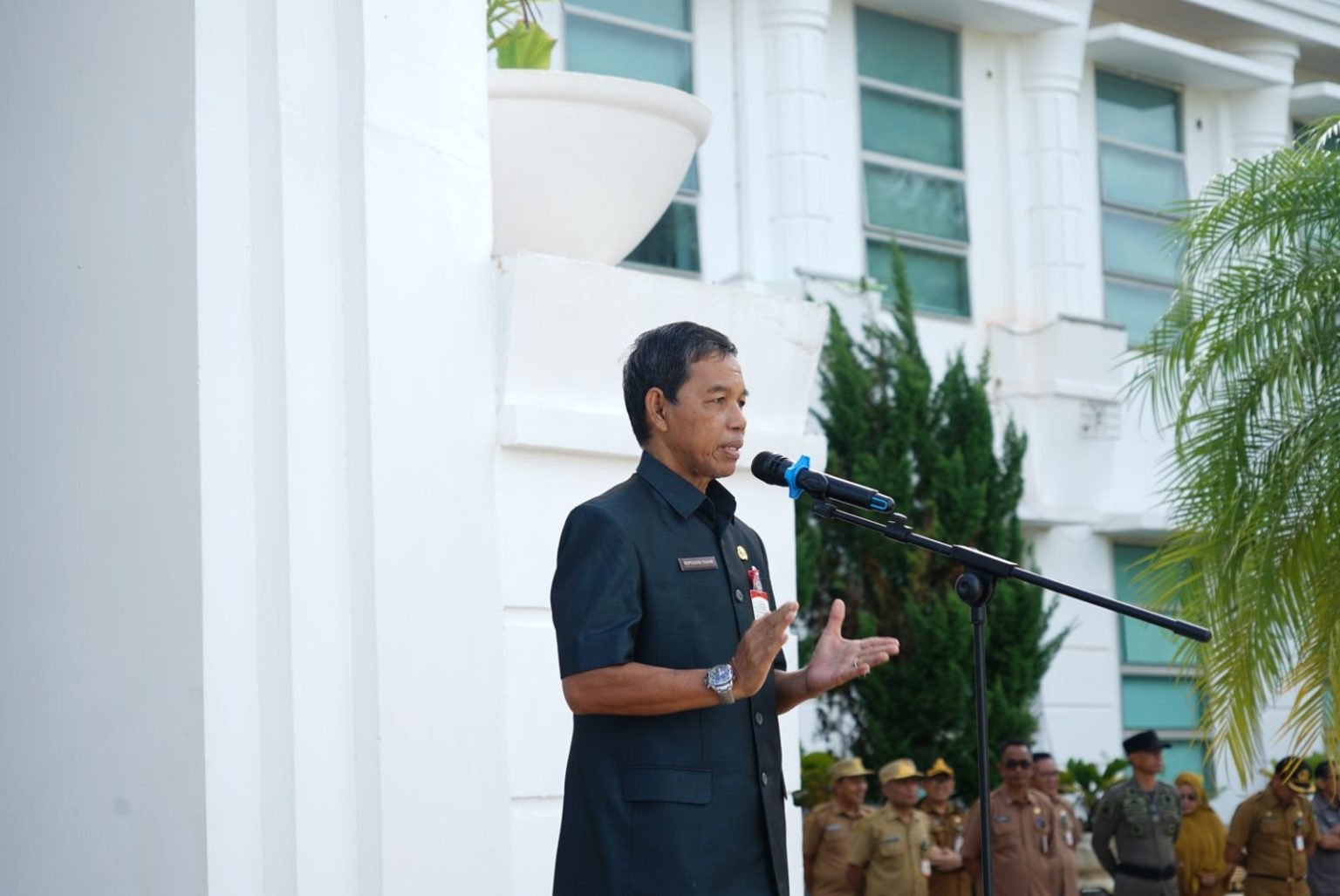 Apel rutin tersebut diikuti oleh para pejabat eselon II, III, IV, staf, serta seluruh ASN.