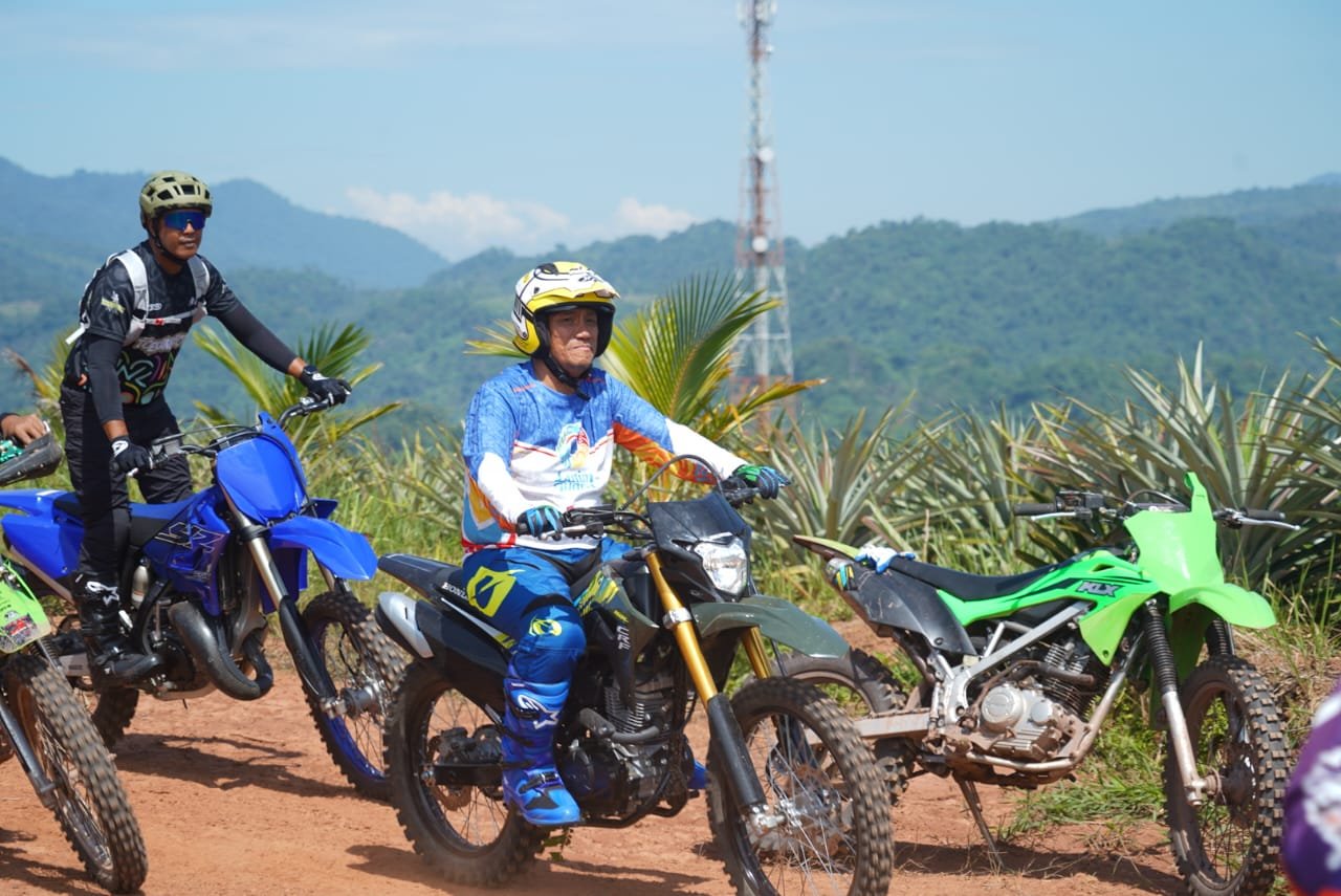 Bupati Luwu Timur, Irwan Bachri Syam, yang mengenakan pakaian khas riders motor trail, tidak hanya hadir untuk melepas peserta, tetapi juga ikut langsung menjelajahi rute alam yang menantang di Kecamatan Wasuponda, Sabtu (11/10/2025).