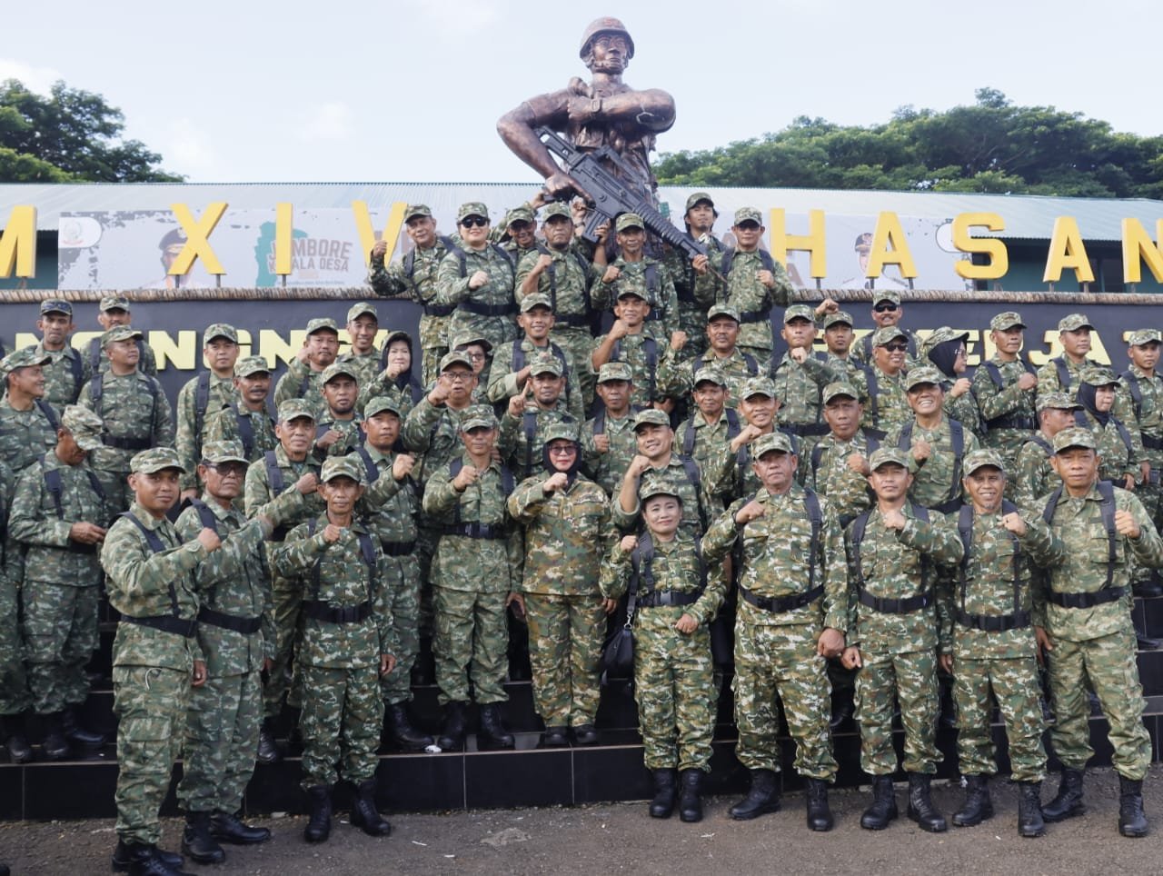 LUWU TIMUR, GASKANINDONESIA.COM- Terlihat penuh kharisma mengenakan pakaian komponen cadangan (Komcad), Wakil Bupati Luwu Timur, Hj. Puspawati Husler, menghadiri Upacara Pembukaan Jambore Kepala Desa se-Sulawesi Selatan di Rindam XIV Hasanuddin, Pakatto, Gowa, Jumat pagi (12/12/2025).