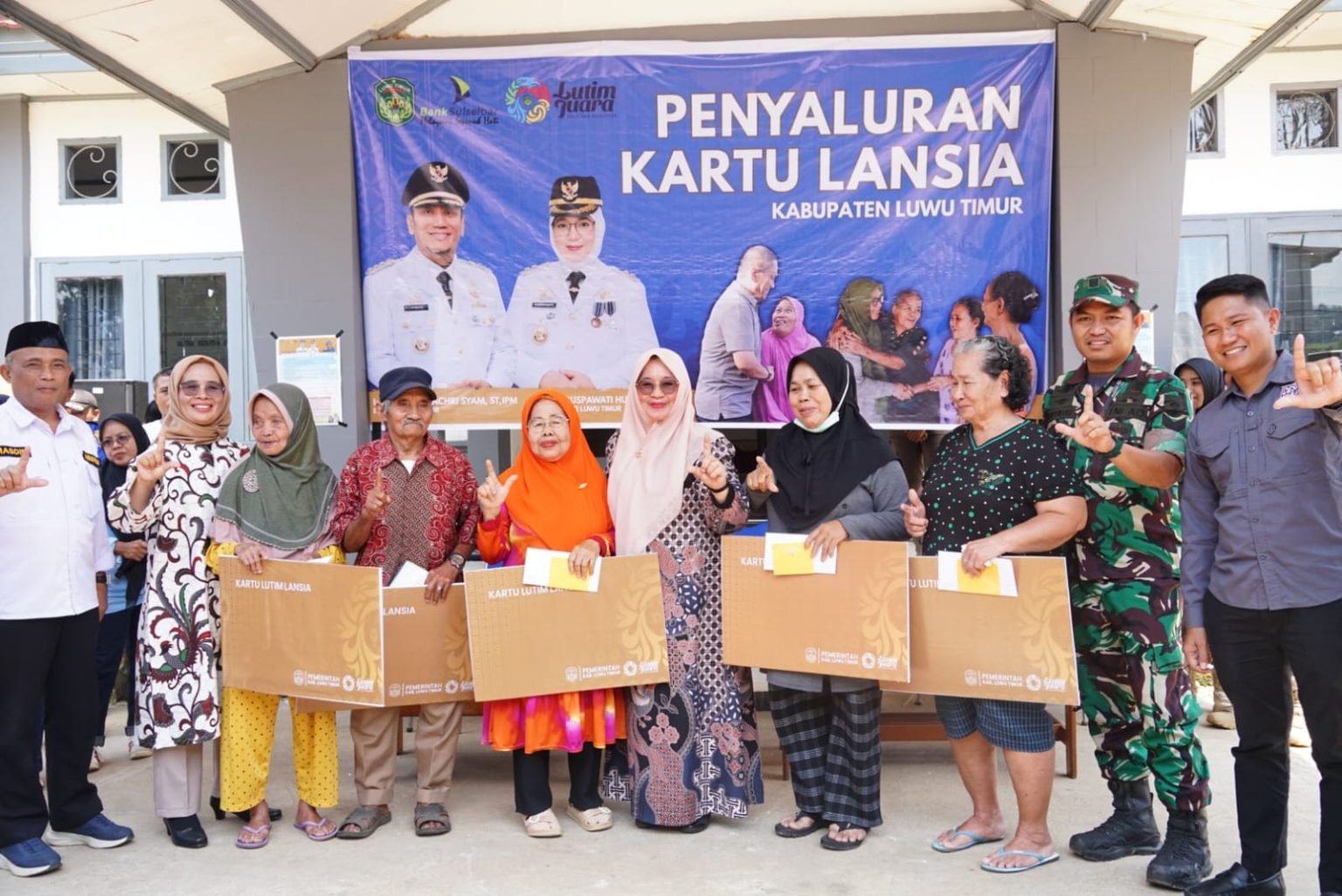 Luwu Timur,GASKANINDONESIA.COM- ‎Hari pertama roadshow penyaluran Kartu Lansia di Kabupaten Luwu Timur berlangsung meriah di beberapa lokasi. Salah satunya di halaman Kantor Camat Wasuponda, yang sejak pagi dipenuhi para lansia dengan semangat menanti kartu ATM, buku tabungan, dan bantuan tunai sebesar Rp 2.000.000 per orang, sebagai bantuan untuk dua bulan.